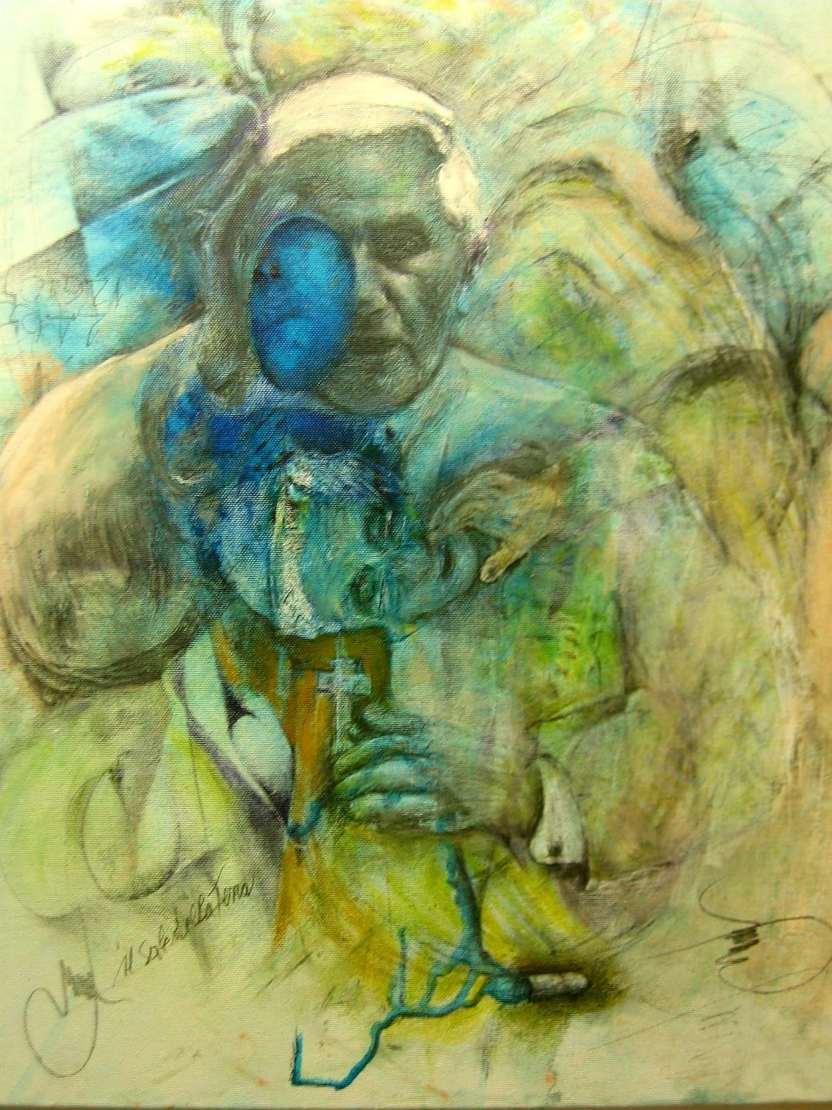 Due quadri su tela 50x70 dai titoli : " Il Sale della Terra " (2005) e " Benedetto Colui che viene nel nome del Signore " (2007) donati al Santo Padre Benedetto XVI.